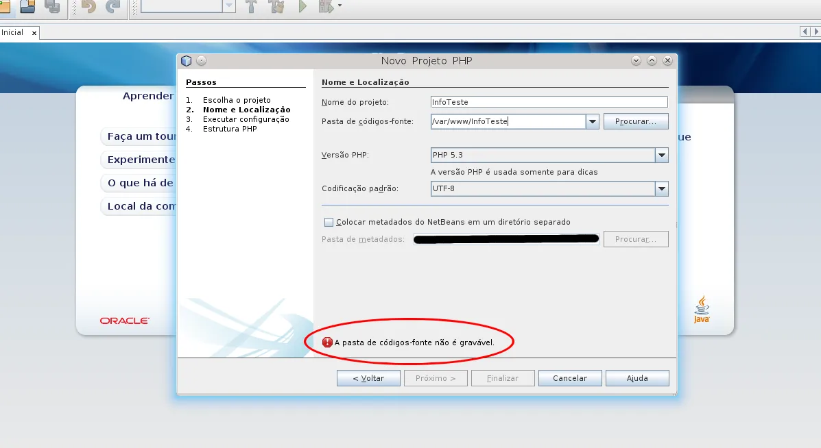 “A pasta de códigos-fonte não é gravável”