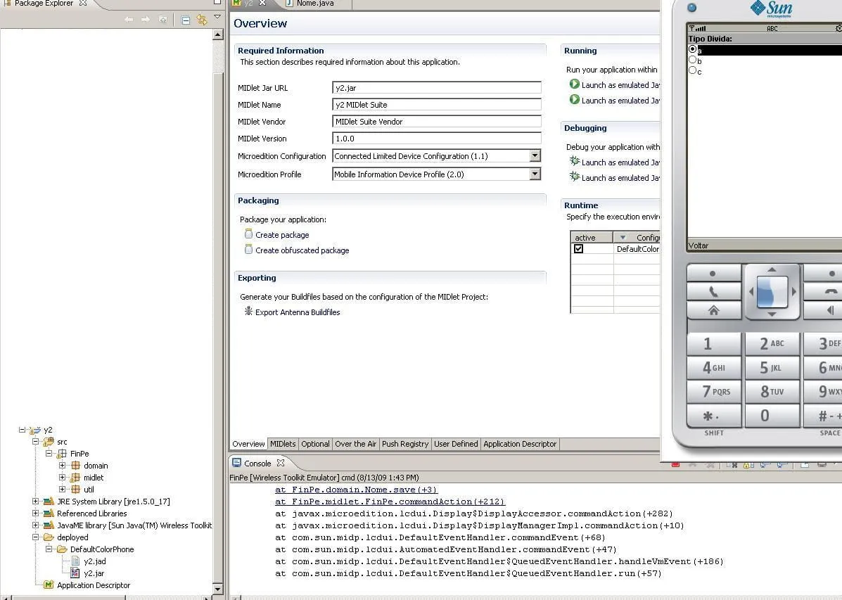 Uso Eclipse para implementação do java, e o WTK para emular.