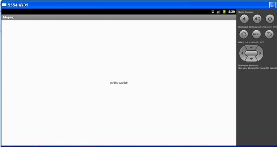 A tela que aparece é toda branca com os dizeres bem no meio.Não se trata de aplicação errada porque toda alteração que eu faço surte efeito, só com este problema de mostrar o “Hello, world”.