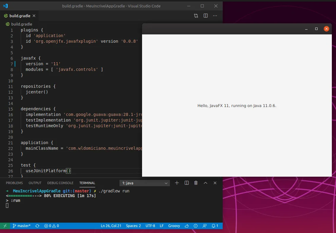 Finalmente depois de muito suor consegui criar um projeto com JavaFX e gradle.