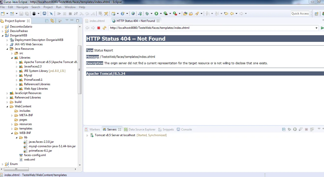 Olá, estou estudando JSF e percebi que quando adiciono o primefaces na pasta WEB-INF / lib, meu comando para de funcionar e da um erro, mas se eu removo o primefaces, meu comando volta a funciona normamente.