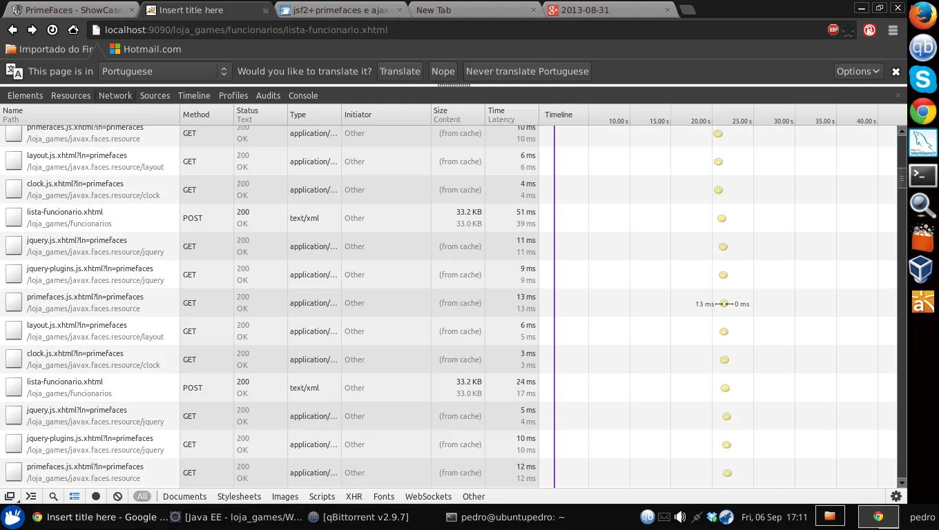 <p:dataTable var="funcionarios" value="#{funcionarioBean.funcionarios}" paginator="true" rows="8"