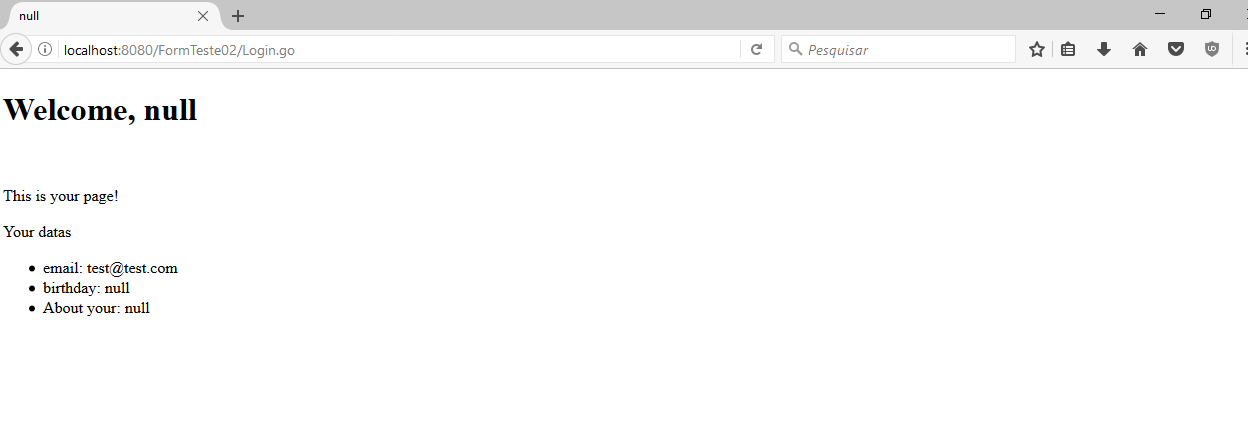Então, como no meu primeiro artigo, lá tem um System.out.println(nameUser + "\n" + email + "\n" + birthday + "\n" + descUser); após acesso ao banco e mesmo dentro do if.