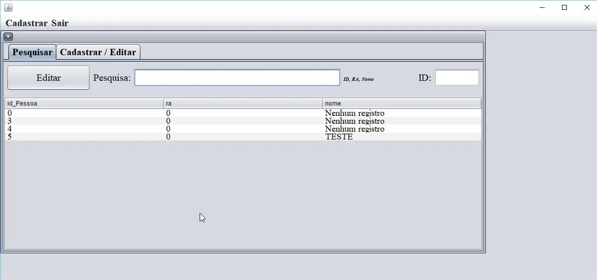 sql = "SELECT id_Pessoa, ra, nome FROM tb_Pessoa WHERE id_Pessoa LIKE ? OR ra LIKE ? OR nome LIKE ?";