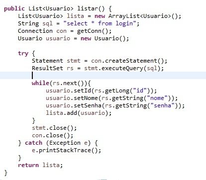 Olá, estou criando um CRUD básico em JDBC, Servlet e JSP com MySQL, eu gosto de testar o DAO antes de ter uma página web, e ao gerar uma List os valores estão vindo como Null.