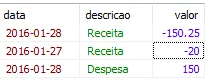 2016-01-01 | Despesa | -100.50