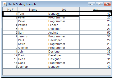 Voce quer dizer que no caso, cada linha da jTable e um objeto? por exemplo o Numero, Nome, Job e Age na imagem a baixo seria um objeto nesse metodo “getValueAt”, logo esse metodo pega cada linha dessa?