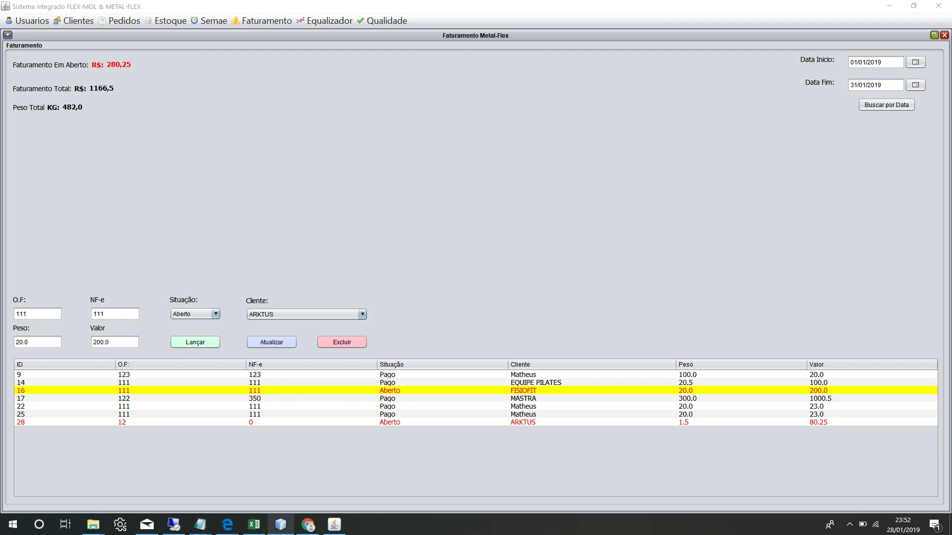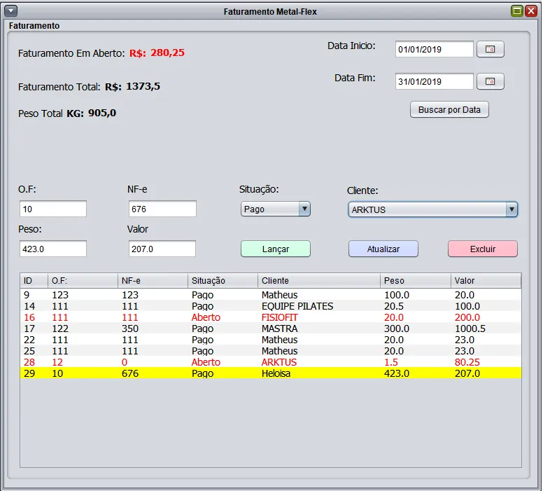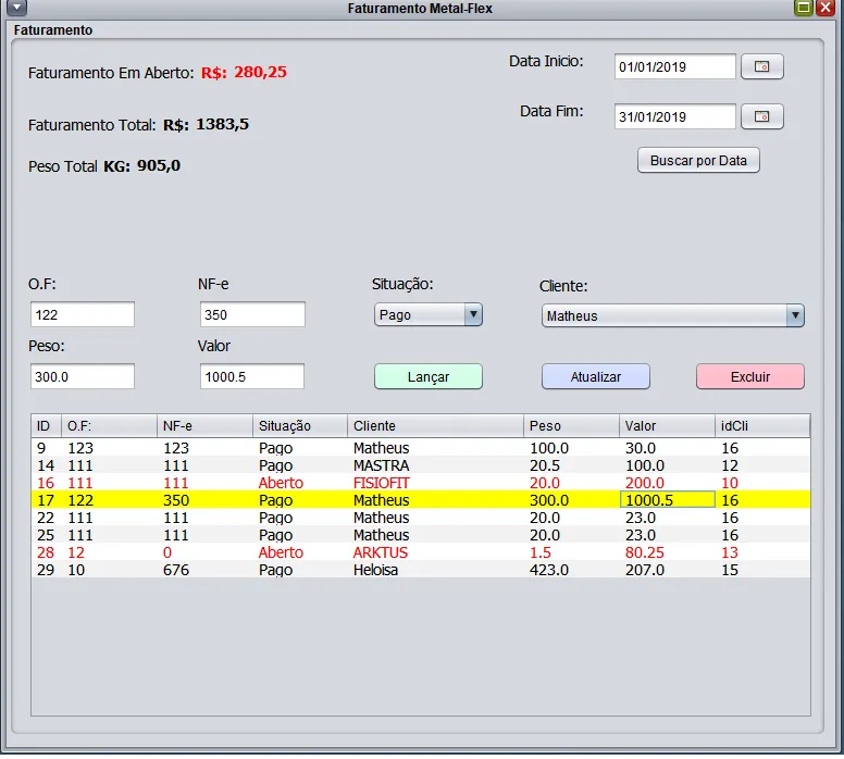 (Veja na foto, a linha selecionada esta com todos os dados no seus respectivos lugares, menos a ComboBox Cliente)