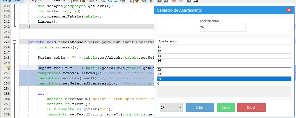 Aqui é o codigo de quando eu seleciono a linha na Jtable e os dados vão para os JtextField(FUNCIONAM!) e a ComboBox cliente(NAO FUNCIONA)