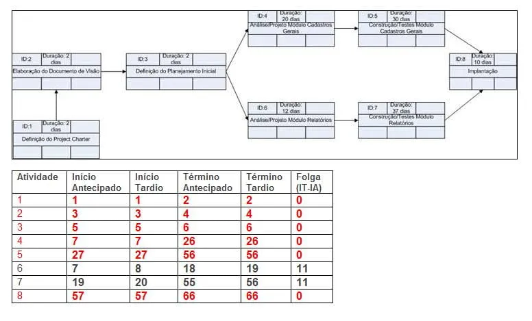 Estou estudando o PMBoK 3rd Edition pelo livro da série Head First. Esse livro ensina a calcular as datas de início/término mais cedo/mais tarde da seguinte forma: