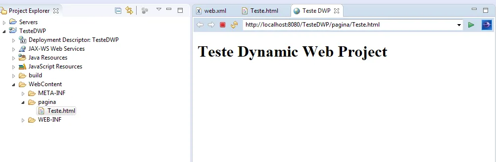 Criei um Dinamic Web Project com o nome de PrimeiroJSF e, depois habilitei o Javaserv Faces.