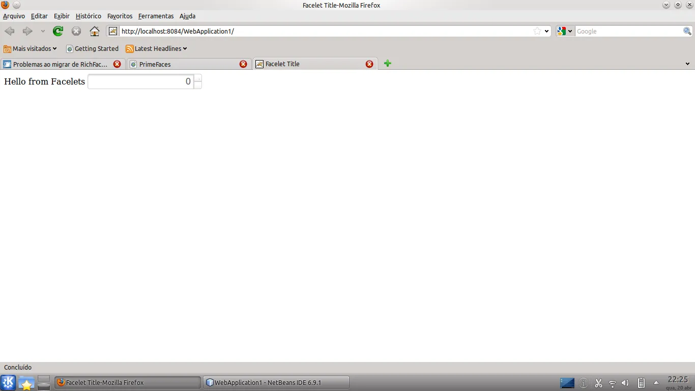 Essa pagina funciona se crio uma nova aplicação e adiciono o jar. Se eu adicionar o jar na aplicação antiga que estava com o RichFaces e tentar abrir essa pagina, só aparece o texto “Hello from Facelets”, mas o componente <p:spinner /> não aparece.