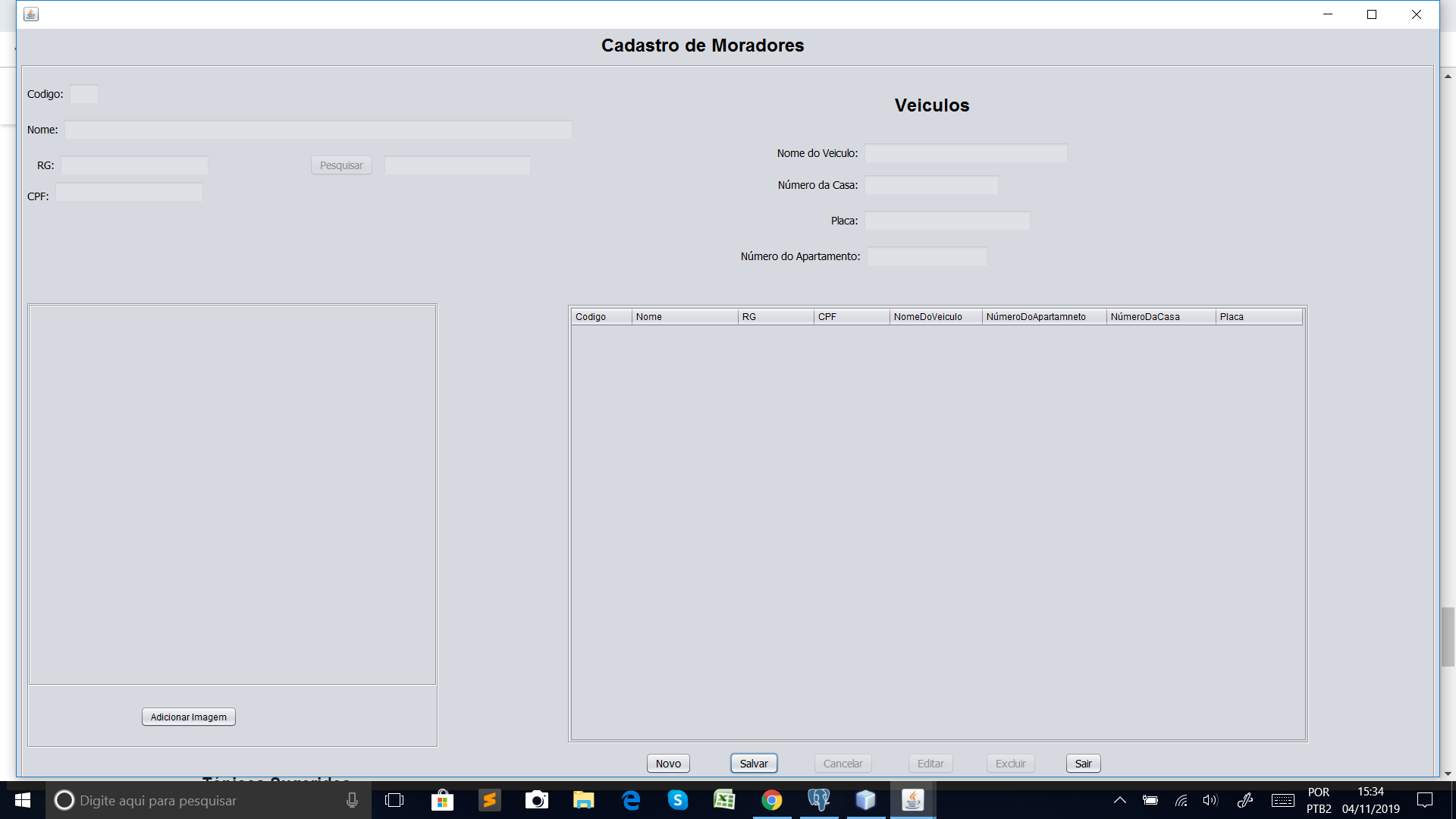 então não tem nada porque eu não consigo cadastrar nenhum dado