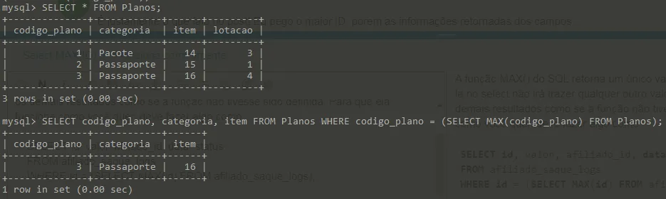 Alguém sabe me dizer porque este SELECT abaixo no MYSQL está pegando o maior ID corretamente, mas os campos (valor, data e status) não trazem as informações do maior ID retornado. O SELECT está pegando o maior ID, mas as informações dos campos (valor, data e status) retornados são de outro ID.