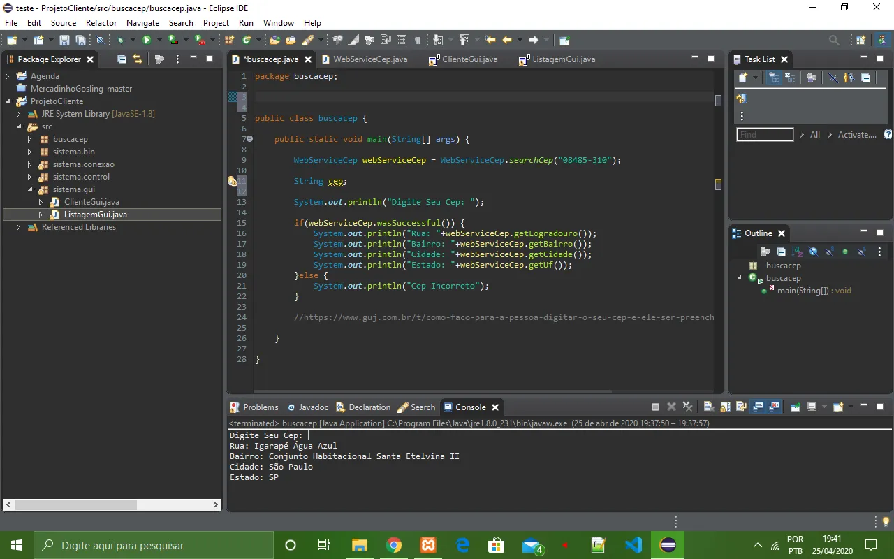System.out.println("Cidade: "+webServiceCep.getCidade());