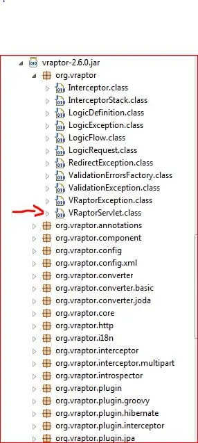 java.lang.ClassNotFoundException: org.vraptor.VRaptorServlet