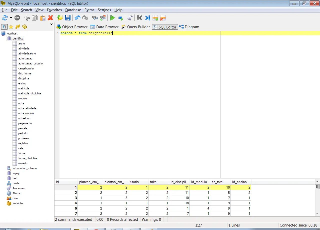 resultado = comando.executeQuery("select * from cargahoraria");