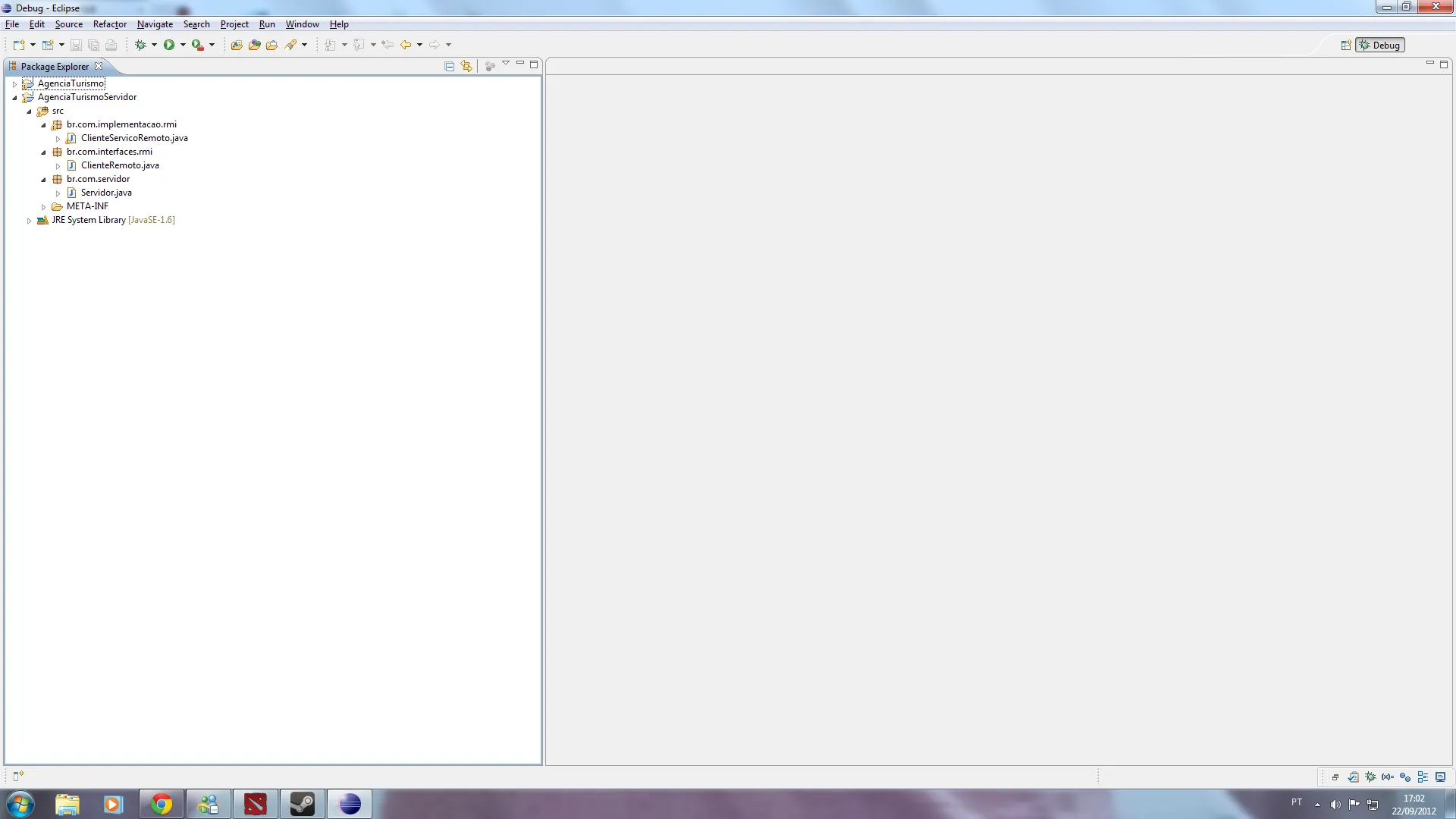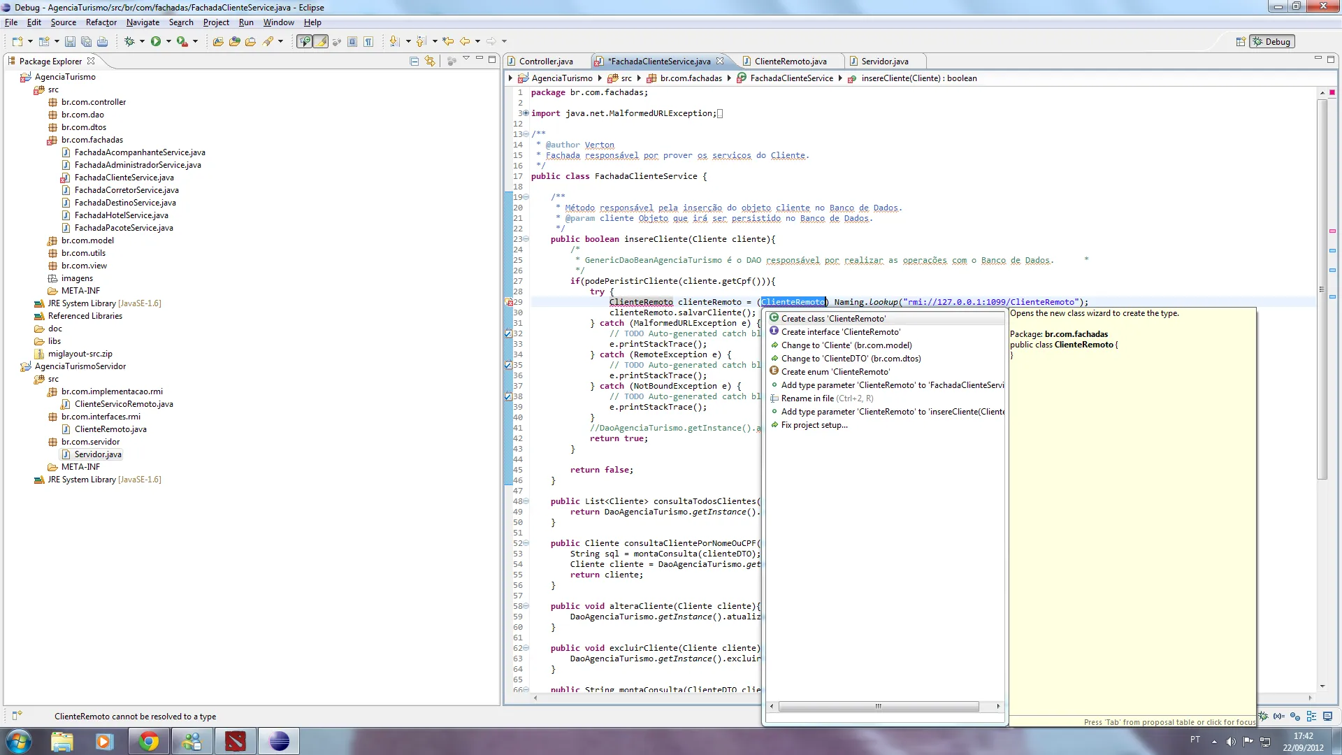 A classe Servidor deveria esta no projeto Agencia de Turismo. O qual teria que ter tambem as interfaces remotas…