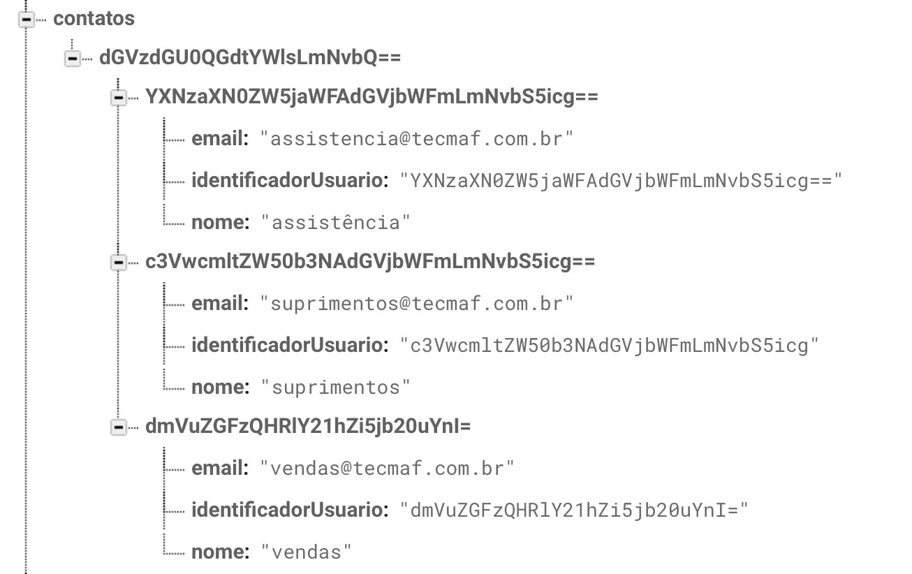Resultado esperado no firebase:
