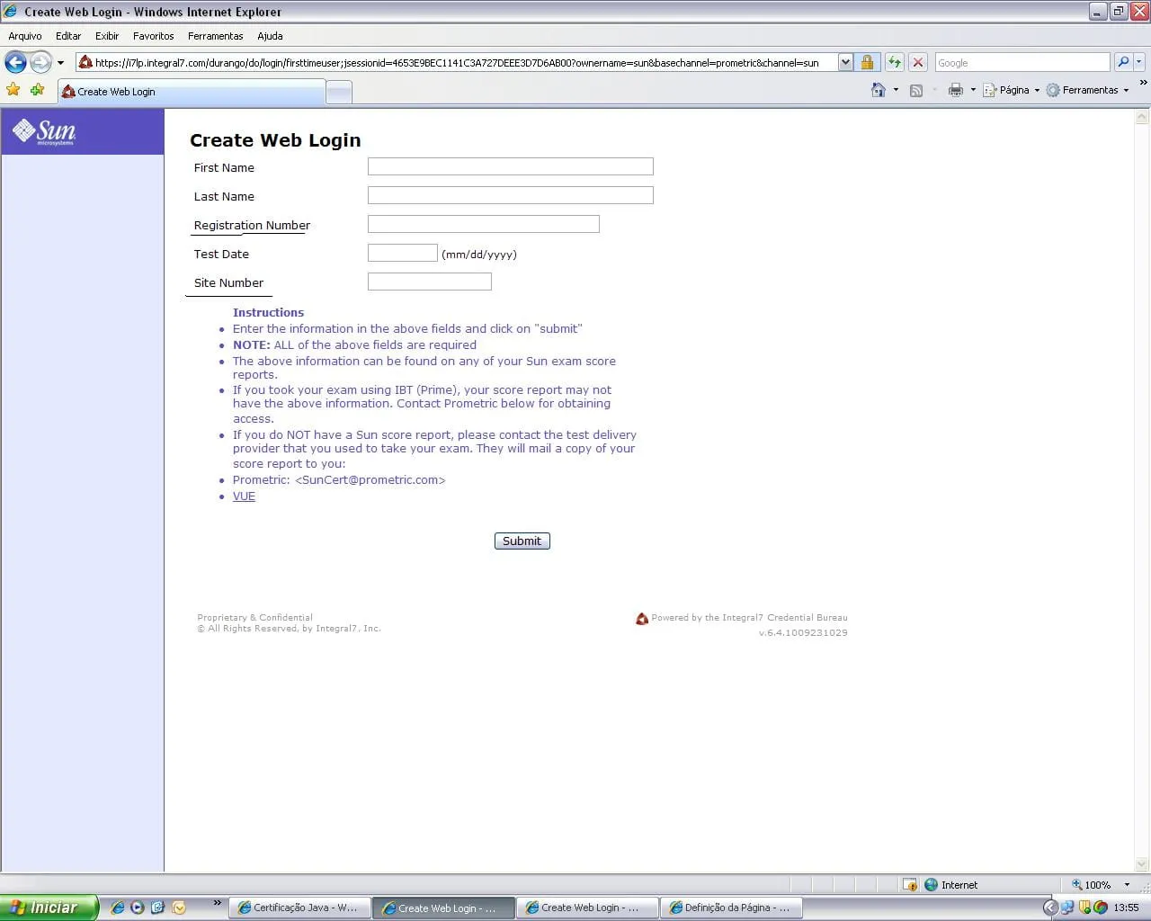 O Registration Number e o Site Number devem estar informados nessa folha.
