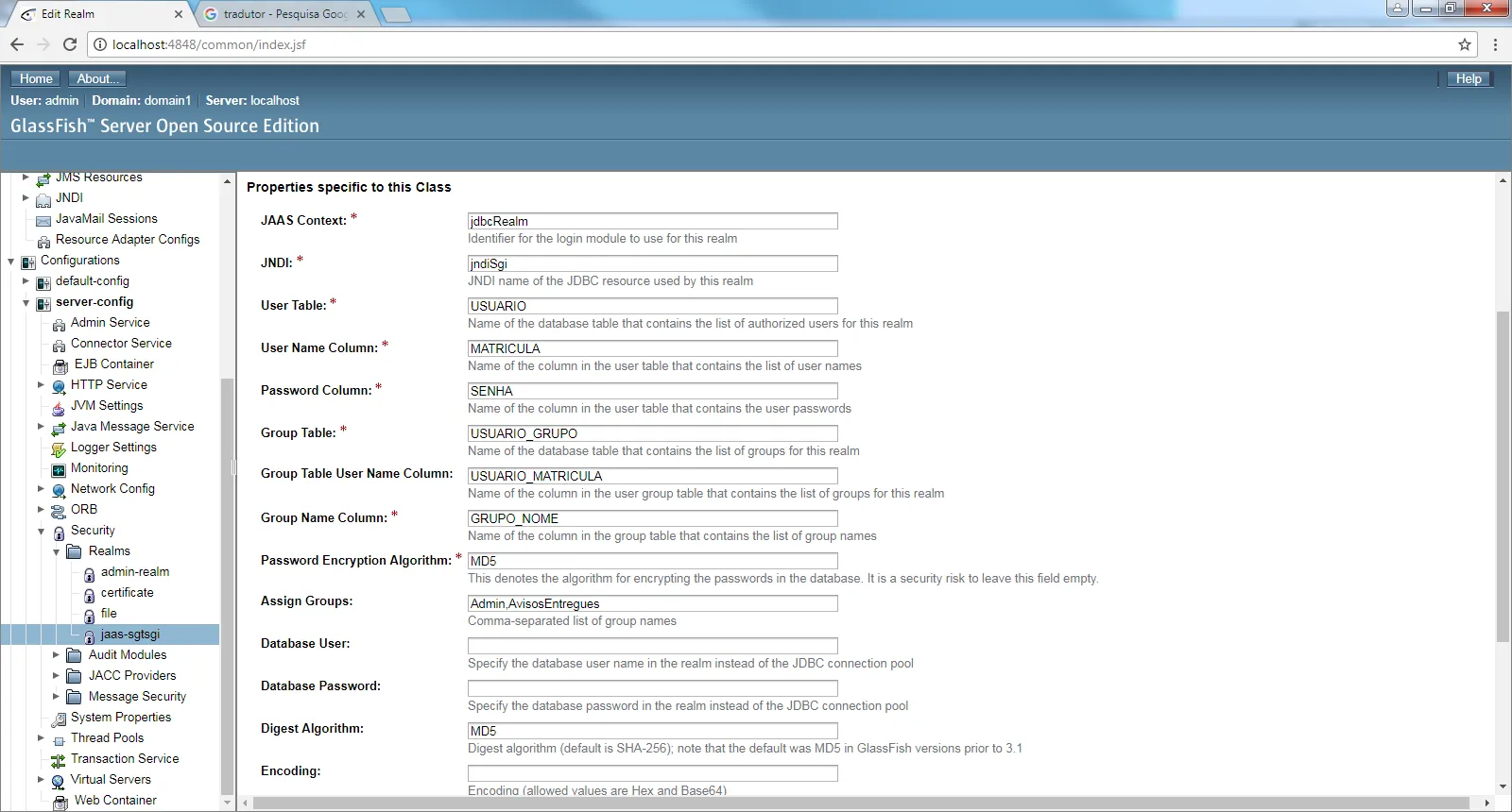 Configuração do jdbcRealm