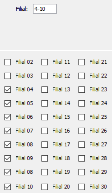 Quero selecionar as JCheckBox de acordo com o intervalo de filiais inseridos no JTextField.