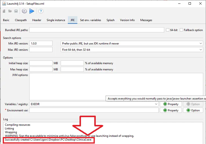 Mas quando, no mesmo projeto, se deleta o JPanel, e se insere uma informação (por exemplo, um JOptionPane), e depois se cria um arquivo executável (exe), o arquivo executável executa normalmente.