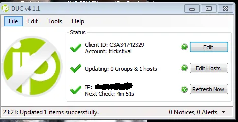 Estou tentando acessar o meu server local em qualquer computador remotamente, e pra isso baixei aquele programinha chamado DUC do NO-IP, criei um domínio gratuito no site e startei o apache no xampp. Vou deixar algumas imagens aqui sobre isso que podem ajudar na solução do problema:
