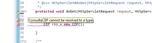 Outra tentativa é, você sabe o nome completo dessa classe? As vezes o Eclipse buga e se enrola na hora de fazer os imports, pode tentar usar o nome completo da classe. pacote.Nome, exemplo: br.com.guj.CEP.
