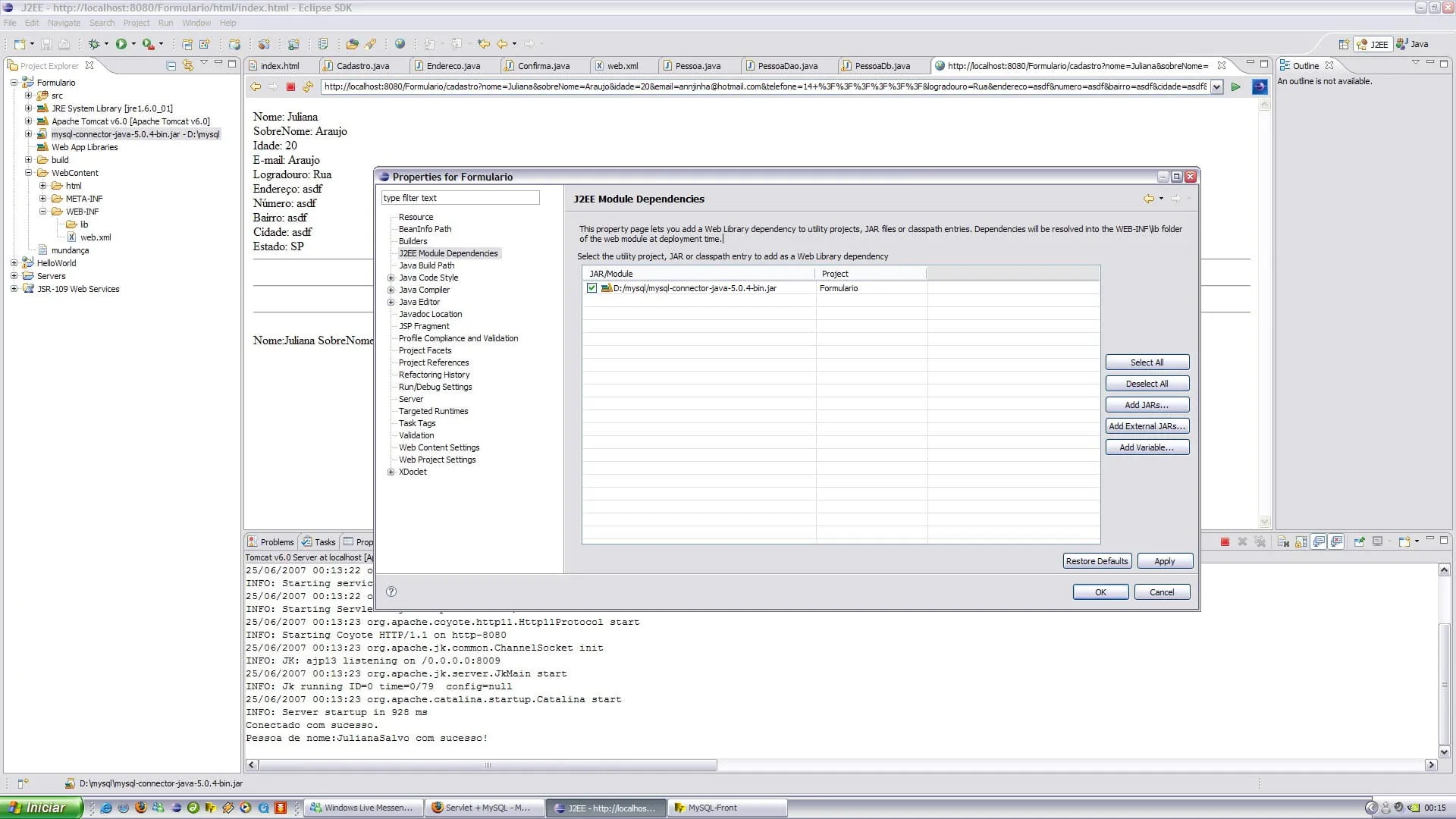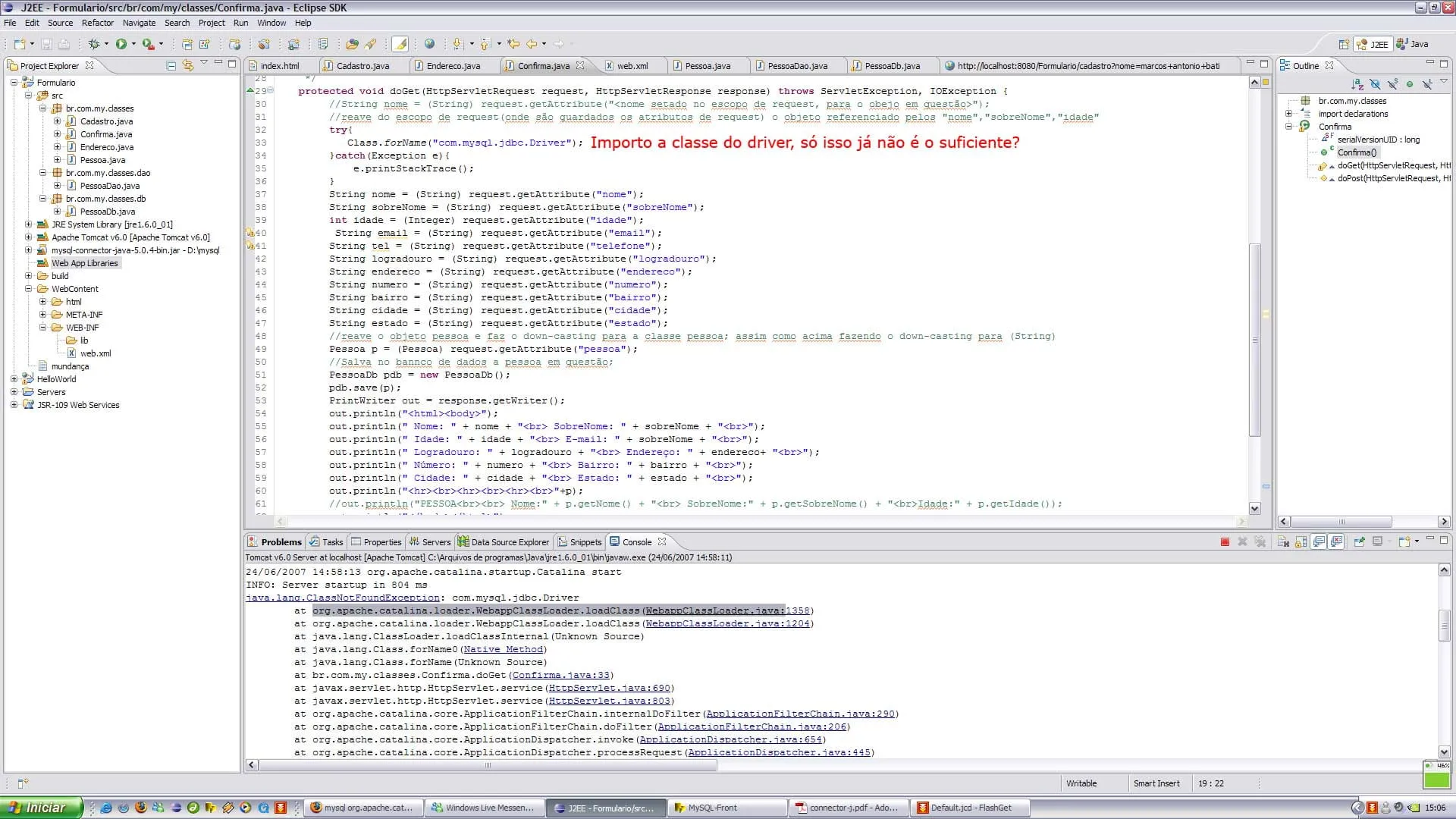 Meu problema assim como de muitos iniciante éo seguinte o console do eclipse emite esta mensagem:
