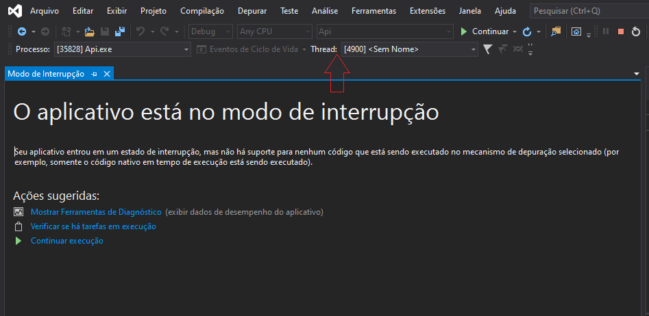 @gbuenoo, interessante… n tinha reparado nessas funções. Observei ao sellecionar outra Thread onde o sistema parou, foi em um MessageBox, e sintaxicamente tudo ok, mas encontrei a frase “Não é possível avaliar a expressão porque um quadro nativo está no alto da pilha de chamada.”