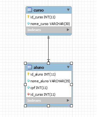 Primeiramente sou novo aqui, e também em java. Criei um sistema para cadastrar curso e alunos, e criei duas tabelas (Cursos e Alunos), na hora de cadastrar um aluno tem o campo nome, o campo cpf e o combobox que puxa os cursos do banco de dados mysql, eu consigo setar no banco o nome do aluno, mas o cpf só pega se for números inteiros, ex:1, 2, 3 e etc. e quando tento setar o cadastro do aluno com o curso que ele faz dá um erro de “incorrect interger value :‘nome do curso’ for column ‘id_curso’ at row 1” abaixo está a tabela no mysql e seu relacionamento: