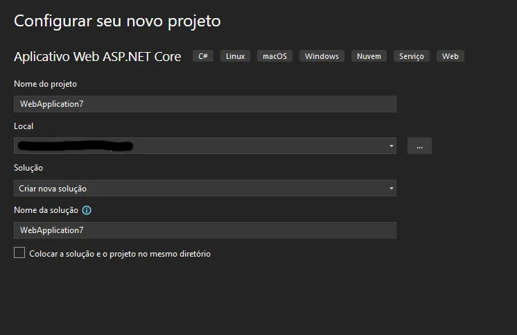 Ao iniciar o visual studio eu clico para criar um aplicativo Web ASP .NET Core, carrega mas não exibe os arquivos para a solution para executar ela, mas os arquivos estão dentro da solution, eu instalei o visual studio faltando algum item? ou estou criando a solution de algum jeito errado?