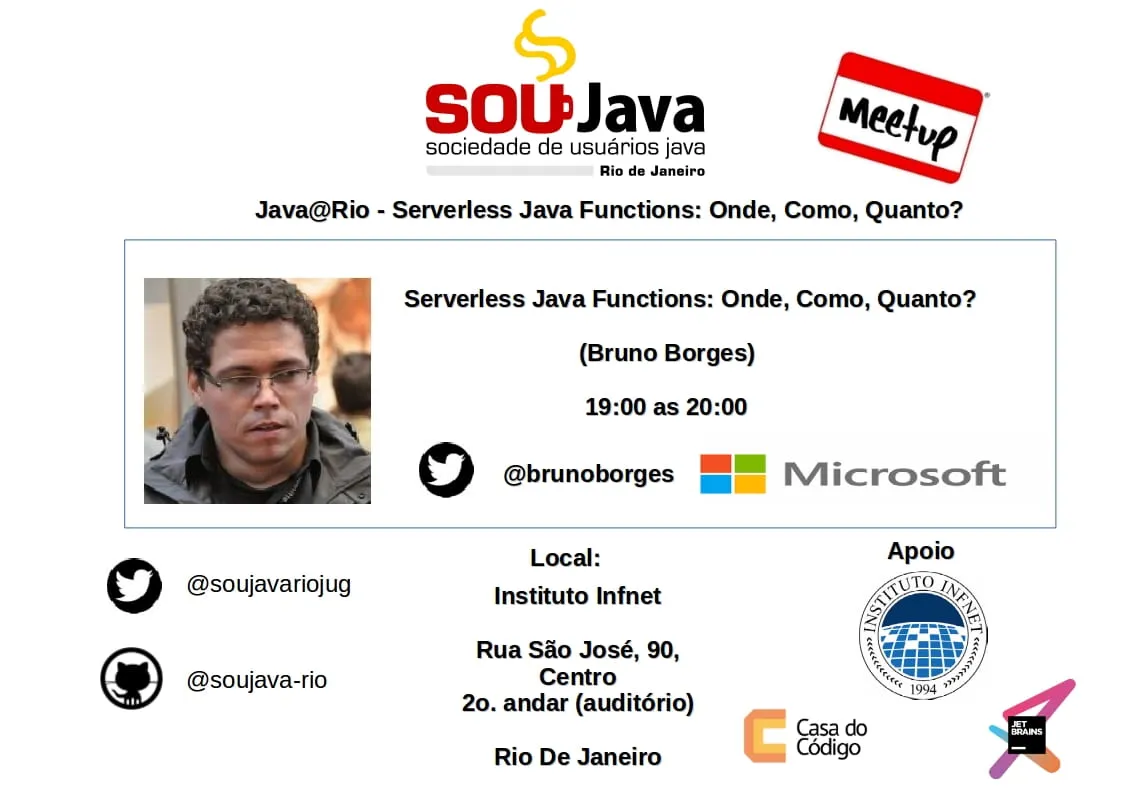 inscrições: https://www.meetup.com/pt-BR/Java-at-Rio/events/248768710/