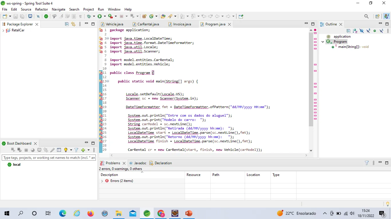 Porém estou tentando evoluir para o spring, para desenvolvimento web, fato que minha aplicação esta dando alguns erros de copilação, não carrega algumas classes e metodos.