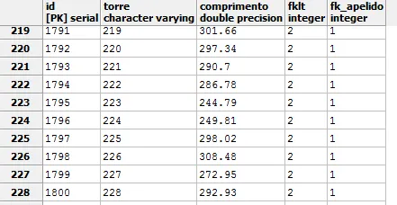 select comprimento from lt_apelido where fklt=2 and fk_apelido=1 and torre=‘224’