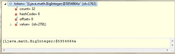 Na realidade eu retorno um usuário onde um dos atributos é um BigInteger[]. O problema é que ao resgatar esses valores ele mostra um BigInteger[] conforme a figura, mas eu não consigo efetuar a conversão.