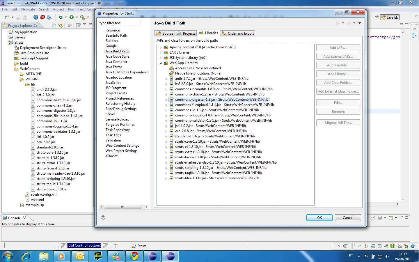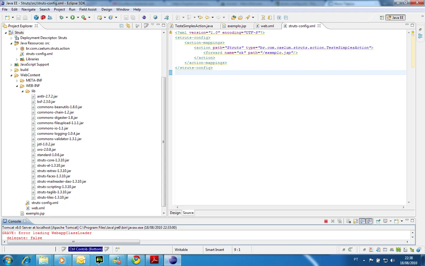Boa noite pessoal. Estou estudando a apostila FJ21 da Caelum e estou tendo o seguinte problema com o Struts 1: