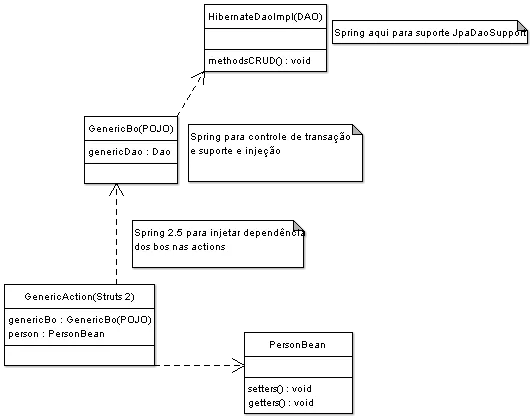 Ah e não se esqueça de usar o Spring 2.5 que tem um excelente suporte a Annottions e tanb o Struts 2.1.