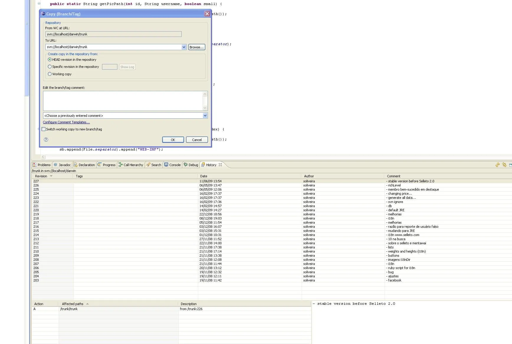 O que devo fazer? Colocar uma tag? Um branch? Aonde? Como faço isso no subeclipse?