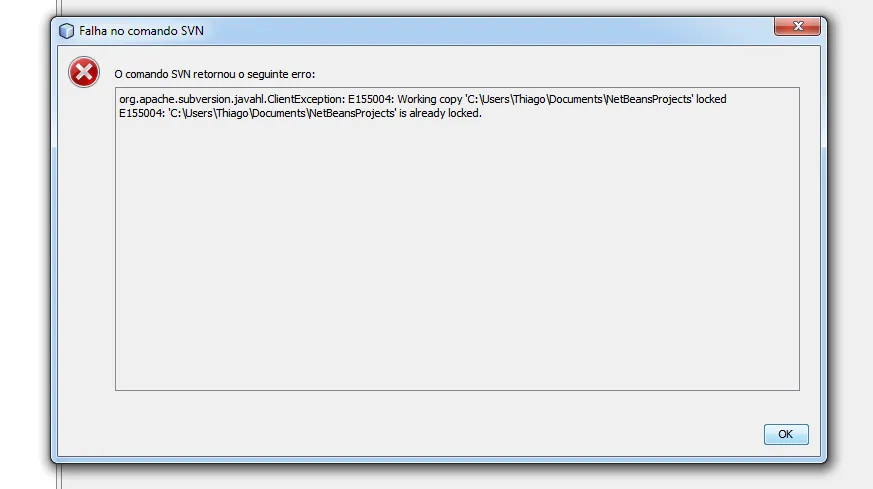 Subversion com Netbeans - Erro ao atualizar ou commit