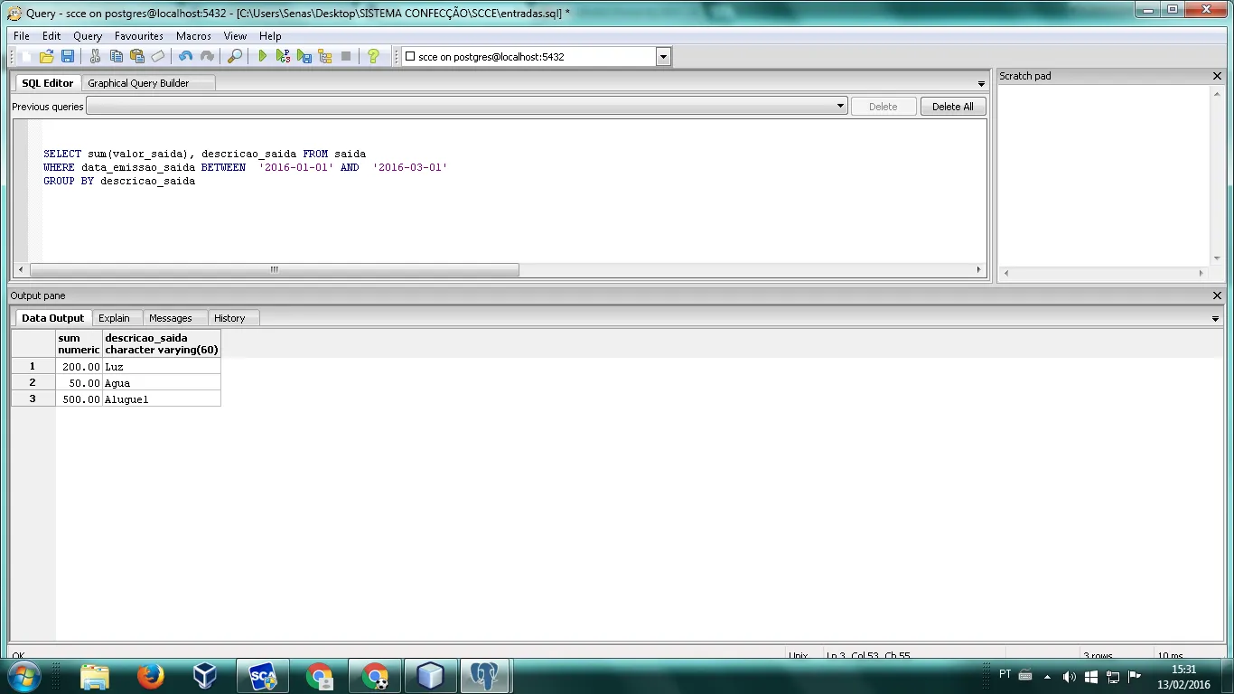 where data_emissao_saida between '2016-01-01' and '2016-03-01'