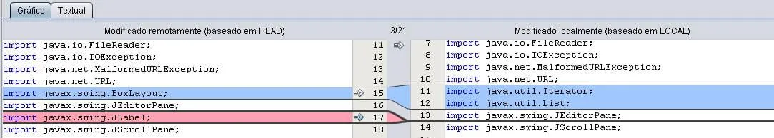 (é muito usado em visualizadores de diff - essa imagem é do netbeans quando faço um compare - o eclipse faz algo parecido também)