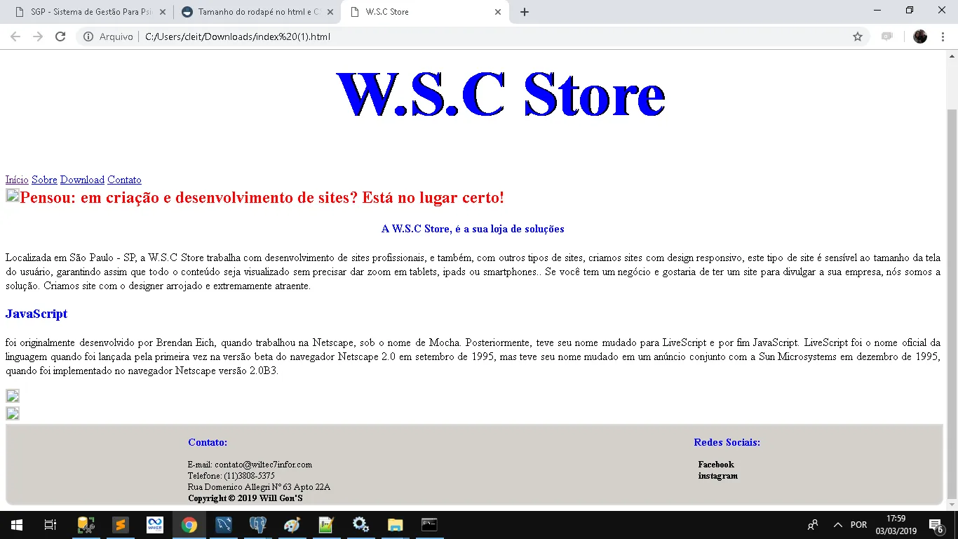 Tamanho do rodapé no html e CSS