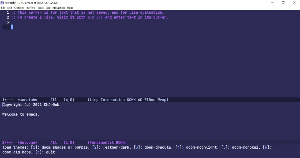 Sei que pode parecer irrelevante, mas fiz uma configuração no meu emacs que achei legal de fazer, na qual me permite trocar de temas via um menu interativo que usa atalhos no teclado, o nome desse tipo de menu interativo é hidra, fiz em elisp, demorei bastante para achar um código de referencia mas consegui fazer uma versão minha.