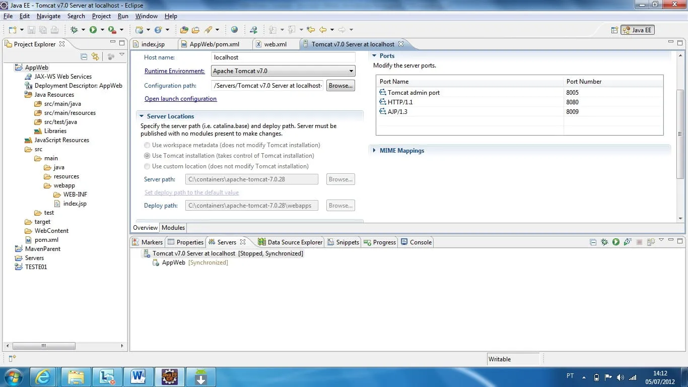 Tenho uma aplicação Web simples que adiciono ao TomCat 7 pelo eclipse.