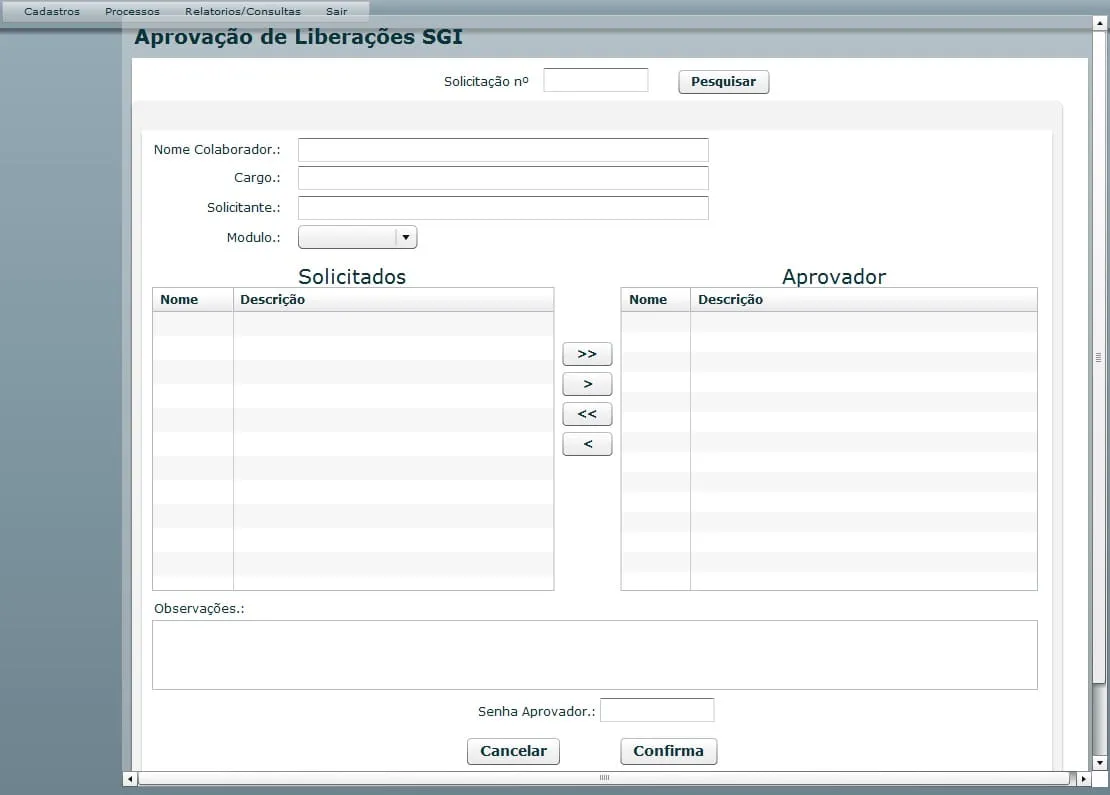 Tenho um formulario contendo duas Grids, conforme anexo. Uma para formularios SOLICITADOS (Que esta sendo populada por um retorno de um select ao meu banco de dados. ) e outra para APROVADOS.