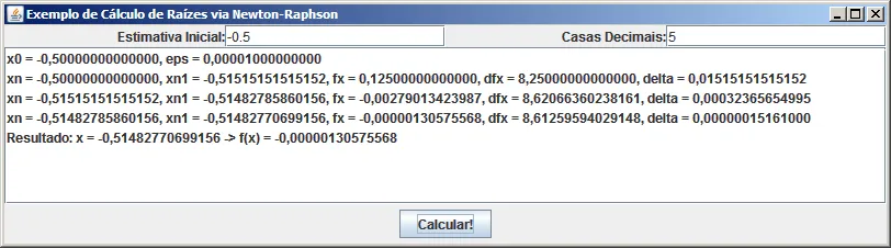 Estou estudando Cálculo Numérico, e estou aqui tentando fazer um algoritmo para fazer o calculo de aproximação de raízes, utilizando o método de Newton-Raphson.