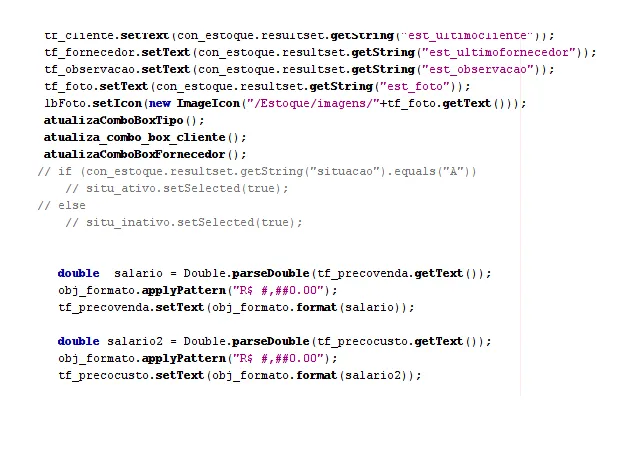 modelo.addRow(new Object [] {con_estoque.resultset.getString("est_codigo"),con_estoque.resultset.getString("est_produto"),strQuantidade ,con_estoque.resultset.getString("est_precocusto"),con_estoque.resultset.getString("est_precovenda")});