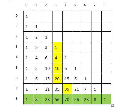 ma [i][j] = ma [i-1][j-1]+ ma[i-1][j];